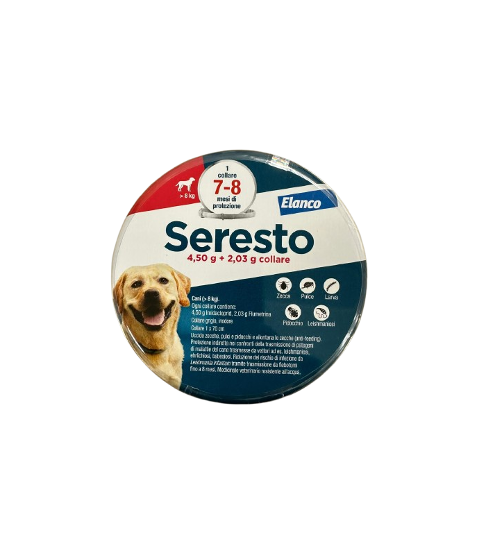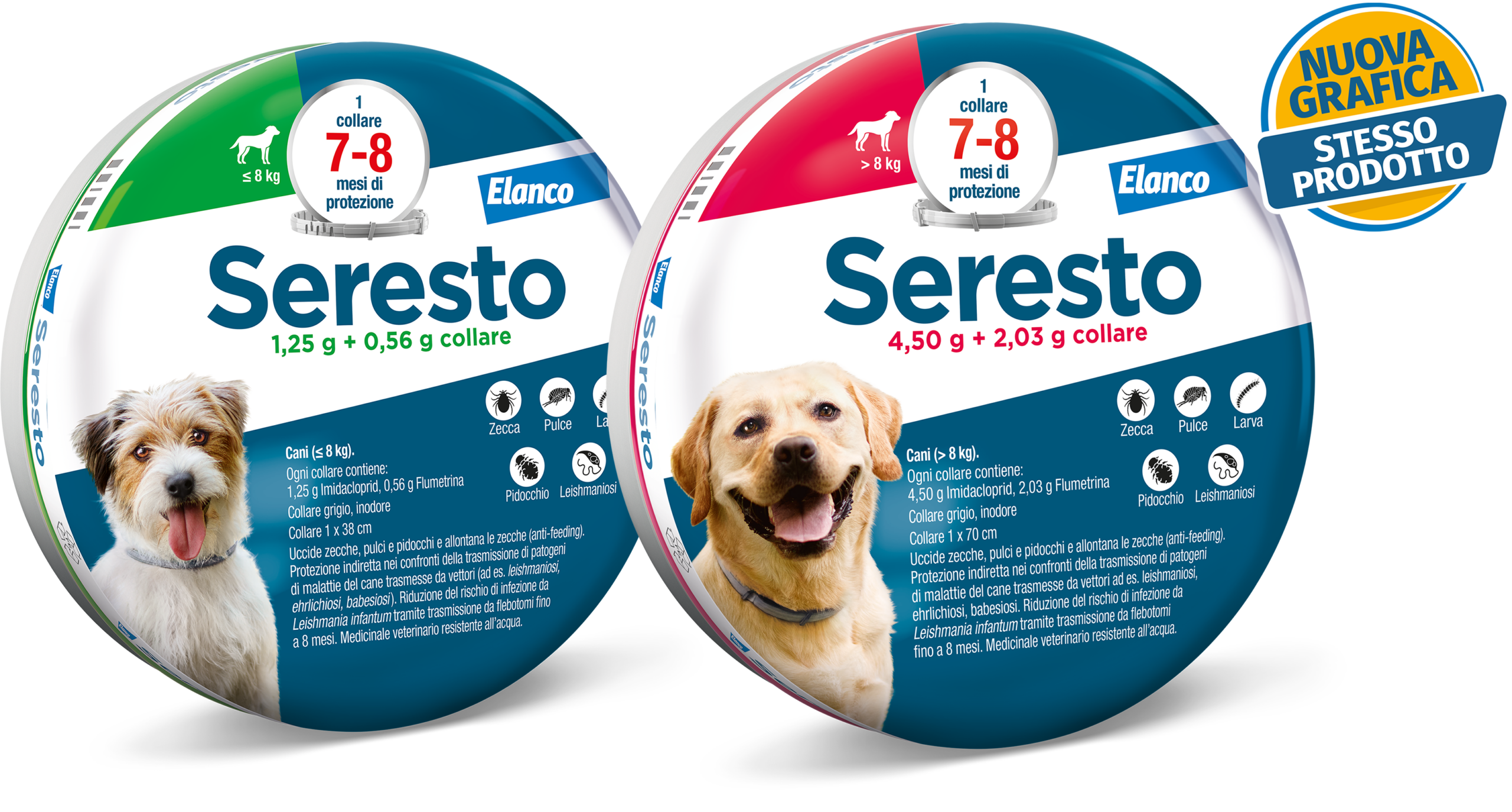 Seresto® è stato sviluppato usando una combinazione di materiali innovativa che lo rende in grado di liberare i principi attivi in basse dosi controllate: in questo modo il cane rimane protetto contro pulci e zecche e anche dal rischio di trasmissione della leishmaniosi canina fino a 8 mesi.