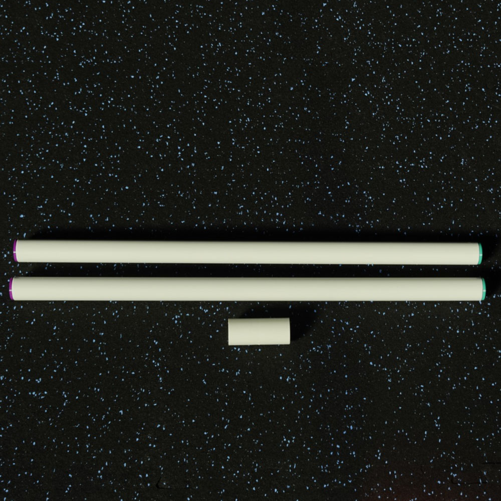 • Il prodotto è costituito da 2 aste di diametro 25mm, lunghe 50cm ciascuna, 1 elemento di giunzione e 4 tappi di estremità.