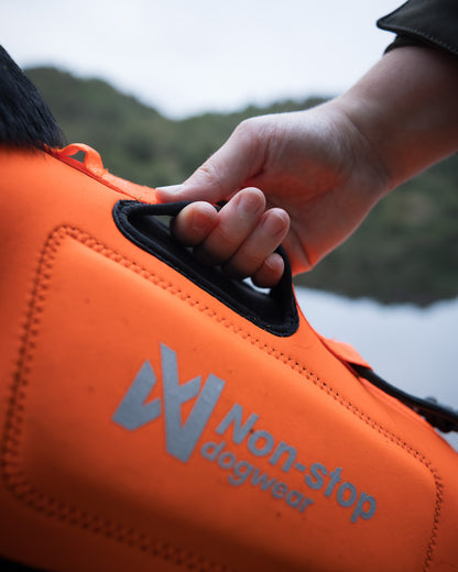 La maniglia a basso profilo rimane piatta quando non in uso per evitare inceppamenti e offre una presa affidabile quando si solleva il cane in barca. Il galleggiamento in neoprene e i pannelli laterali in schiuma forniscono ulteriore supporto in acqua senza limitare l’agilità sulla terraferma.