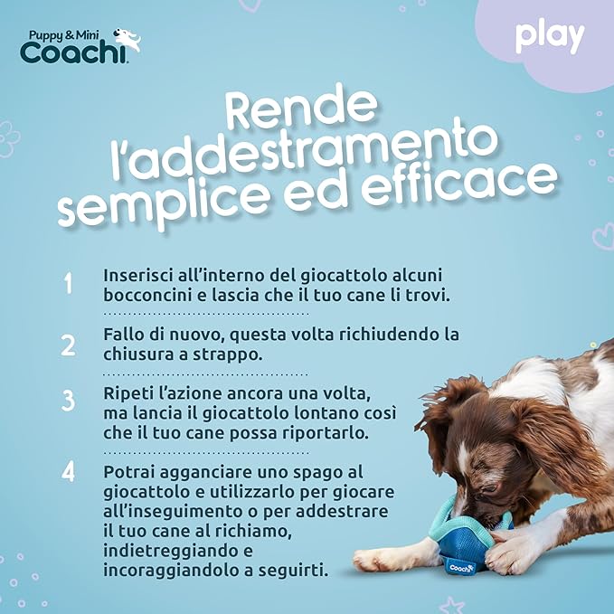 Il Coachi Chase & Treat è un gioco interattivo pensato per stimolare il cane sia a livello mentale che fisico, unendo movimento e motivazione in un unico strumento.