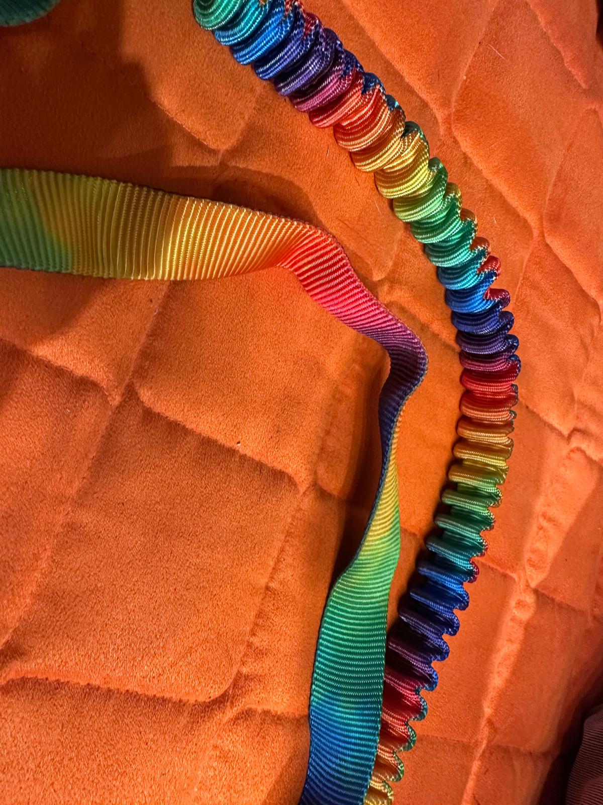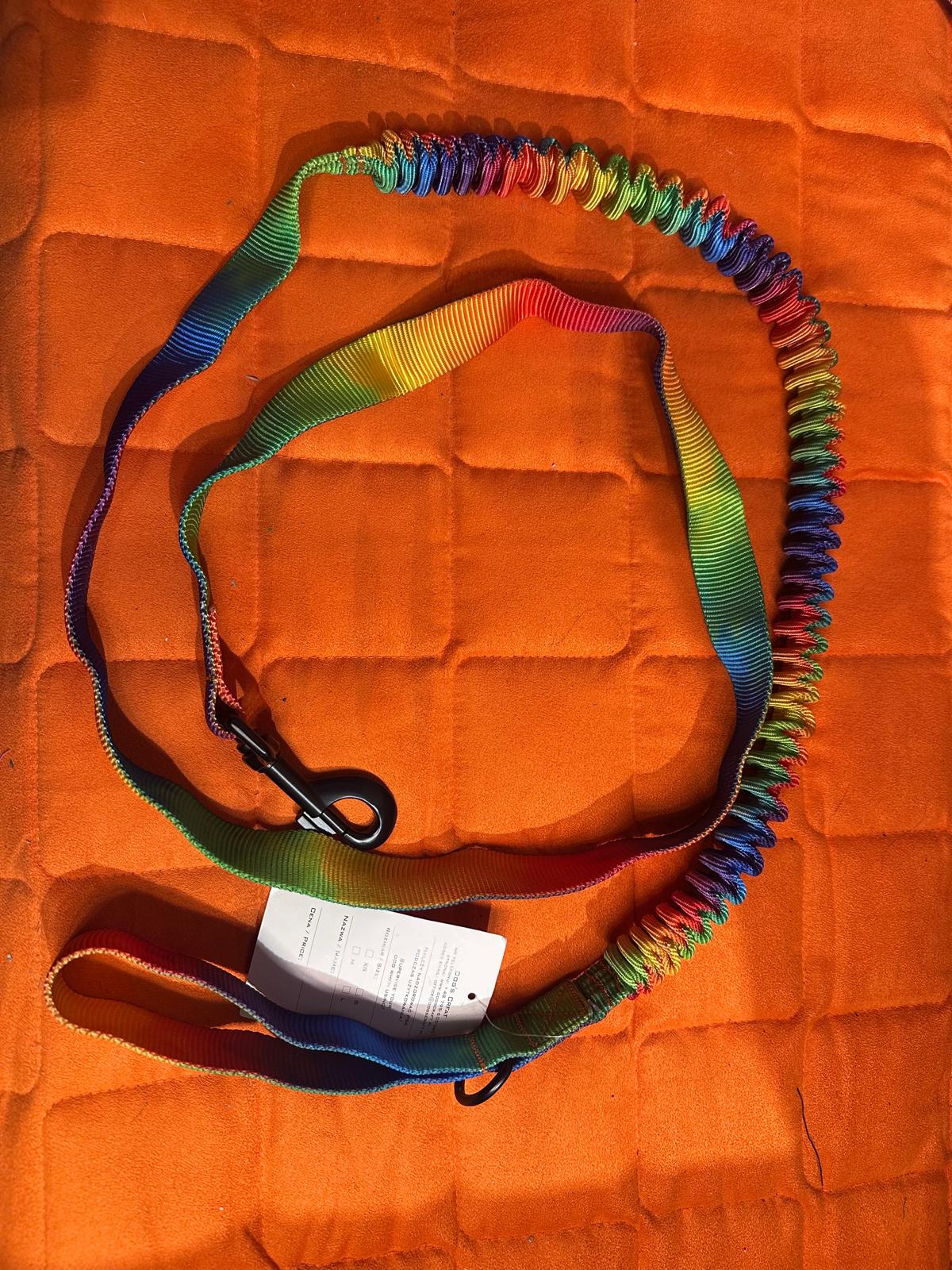 Realizzato in materiale resistente e flessibile, questo guinzaglio garantisce un buon controllo mantenendo allo stesso tempo una gestione più morbida della trazione. La struttura combina una sezione elastica intrecciata con parti in fettuccia robuste, pensate per un utilizzo quotidiano o per attività come camminate attive e allenamento.